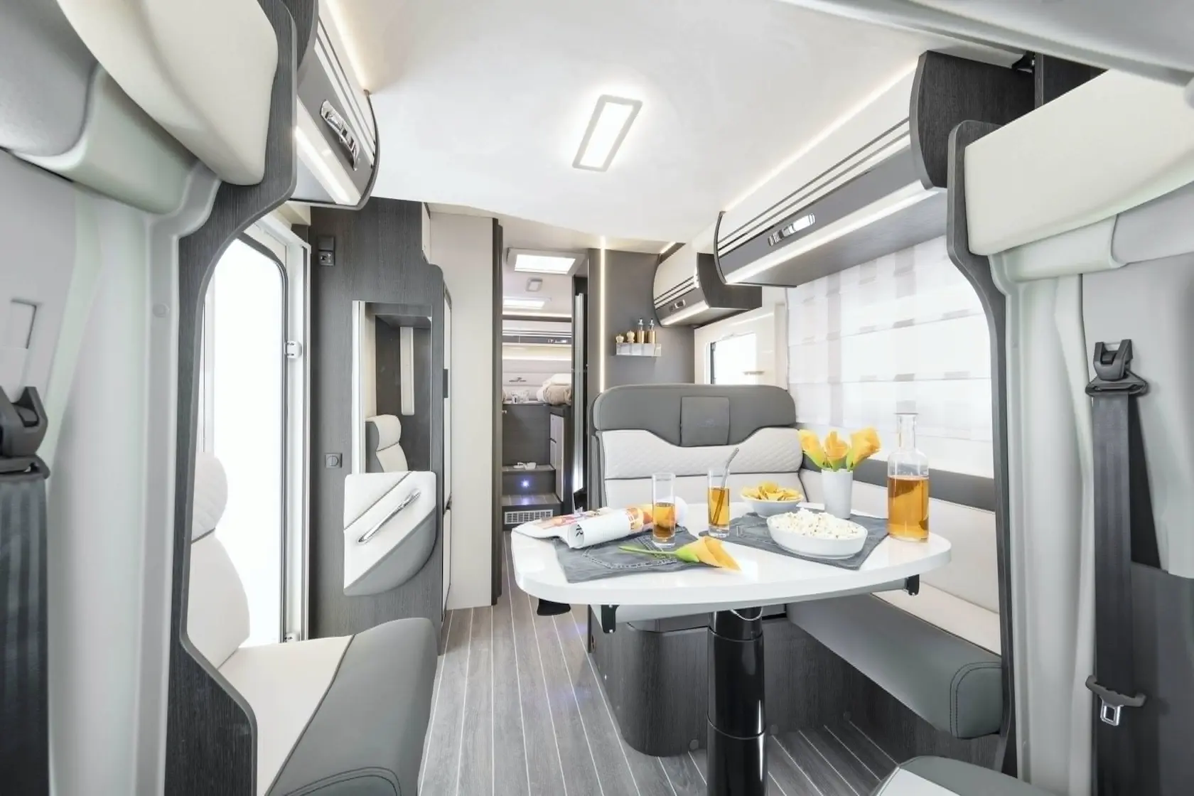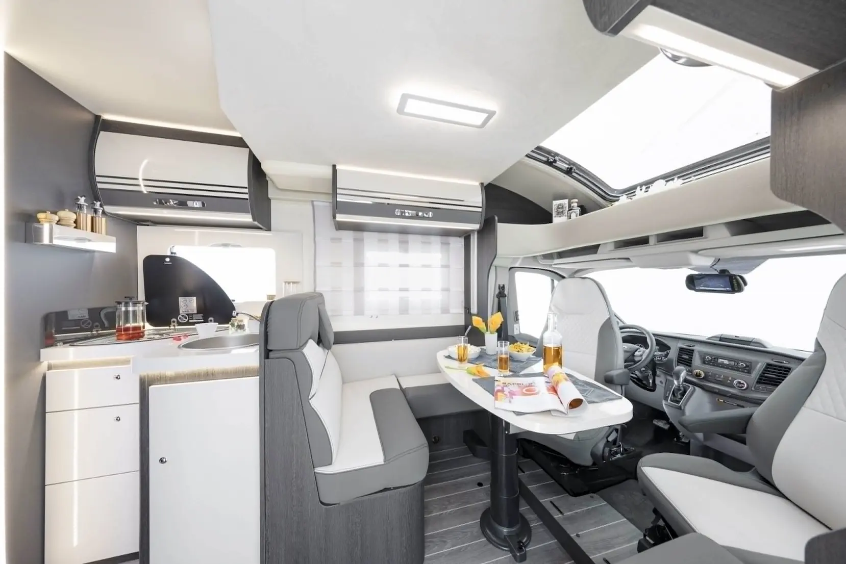 Opływowa półintegra z przestrzenią dla 5 osób to wyjątkowa wygoda podróżowania jak i funkcjonowania w domu na kołach przez cały rok. Kamper dostosowany do zimowych wyjazdów.